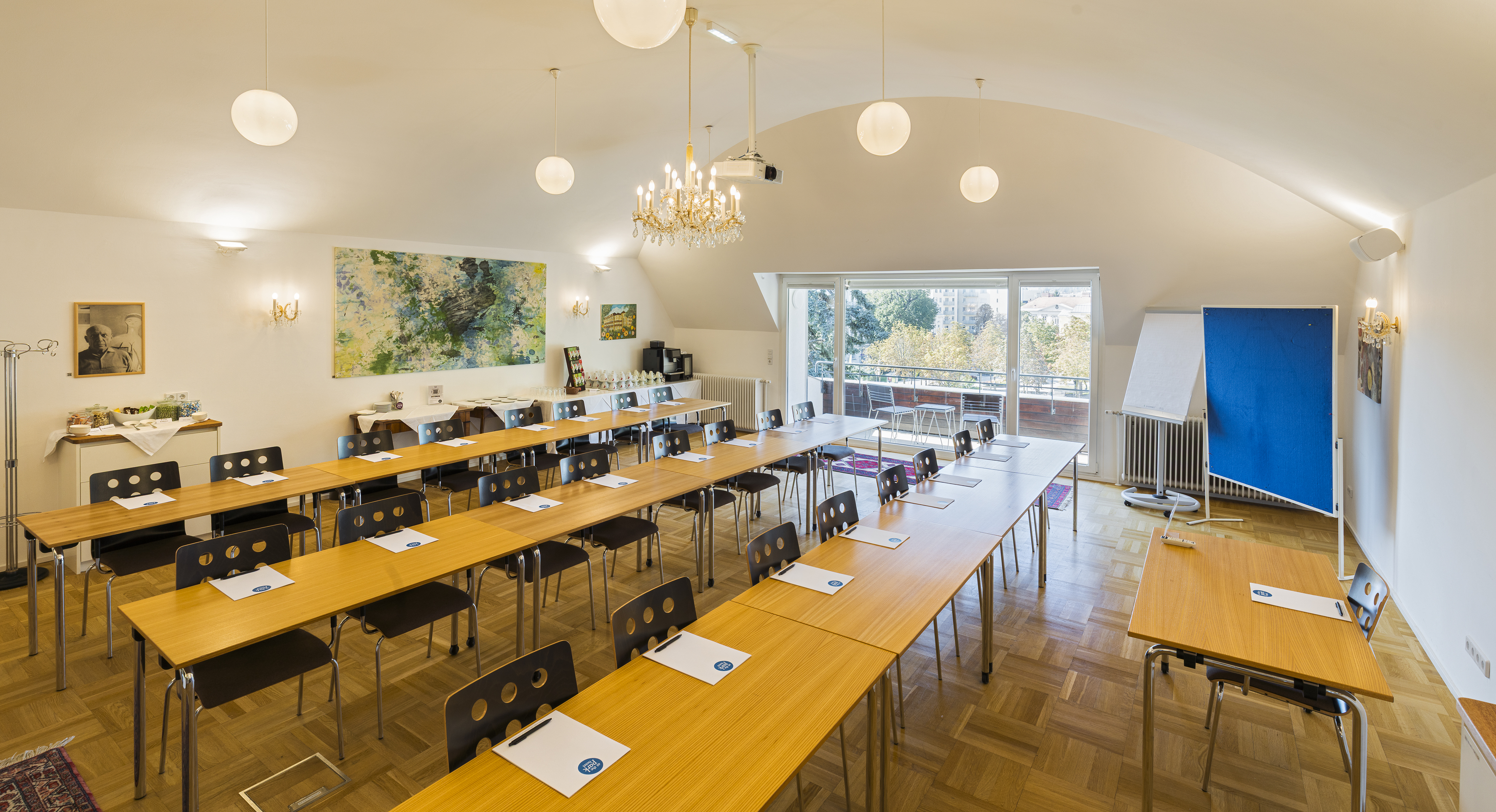 Unsere klimatisierten Seminarräume „Casino“, „Kurpark“, „Theater“, „Bibliothek“ & "Kuppelsaal" verfügen über modernste Präsentationstechnik, variable Bestuhlungsmöglichkeiten und teilweise Zugang zu einem Balkon.
