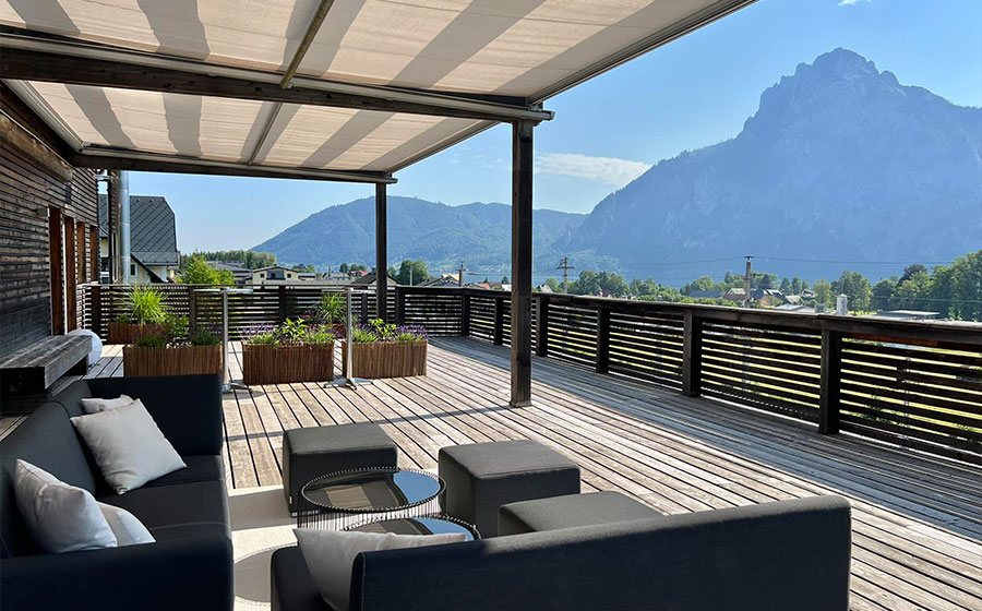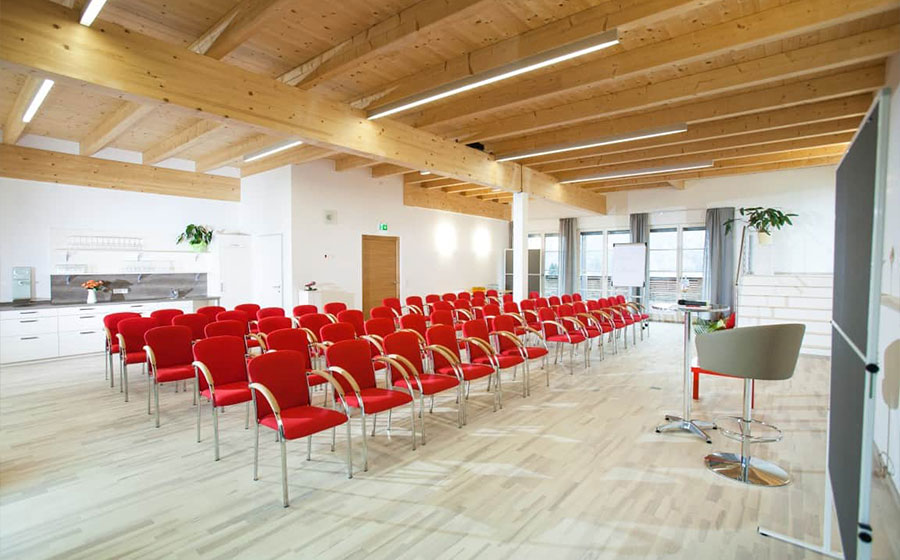 Seminare, Konferenzen, Tagungen, Workshops, Fortbildungen, Veranstaltungen & vieles mehr im lichtdurchfluteten Seminarraum – 120qm mit zwei großen Sonnendecks, Blick auf den Traunsee, das Bergpanorama und die umliegende grüne Hügellandschaft