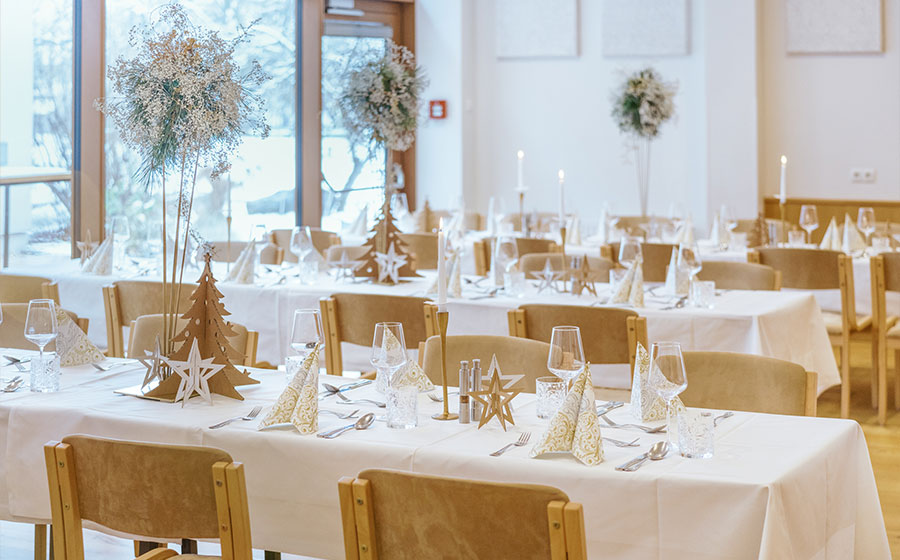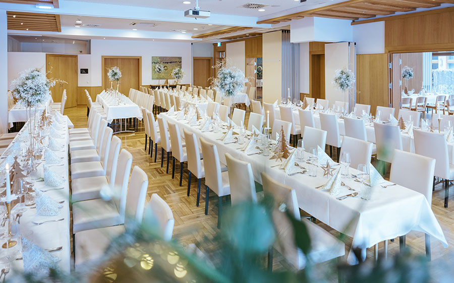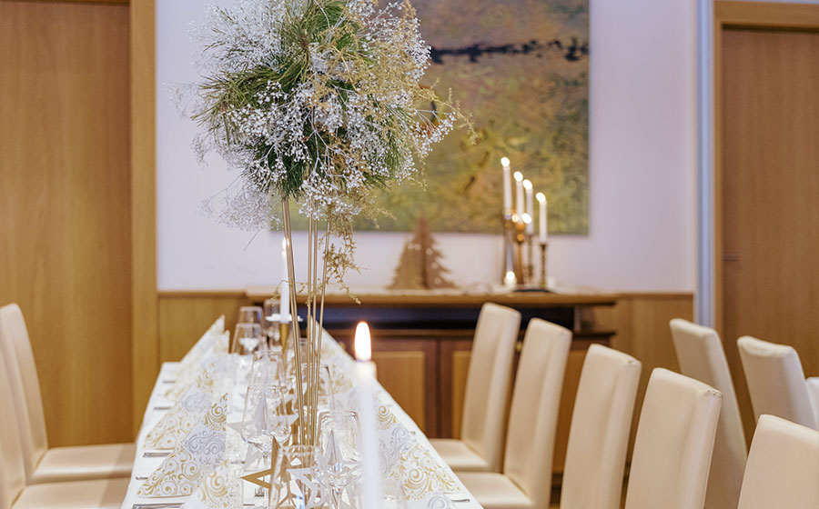 Feiern Sie Weihnachten oder den Start ins neue Jahr in stilvoller Atmosphäre im Garten-Hotel. Ob besinnliches Beisammensein, Firmen-Weihnachtsessen oder schwungvolle Jahresbeginn-Feiern – facettenreiche Räumlichkeiten, ausgezeichneter Kulinarik und stimmungsvolle Rahmenprogramme schaffen genussreiche Momente, die bleiben.