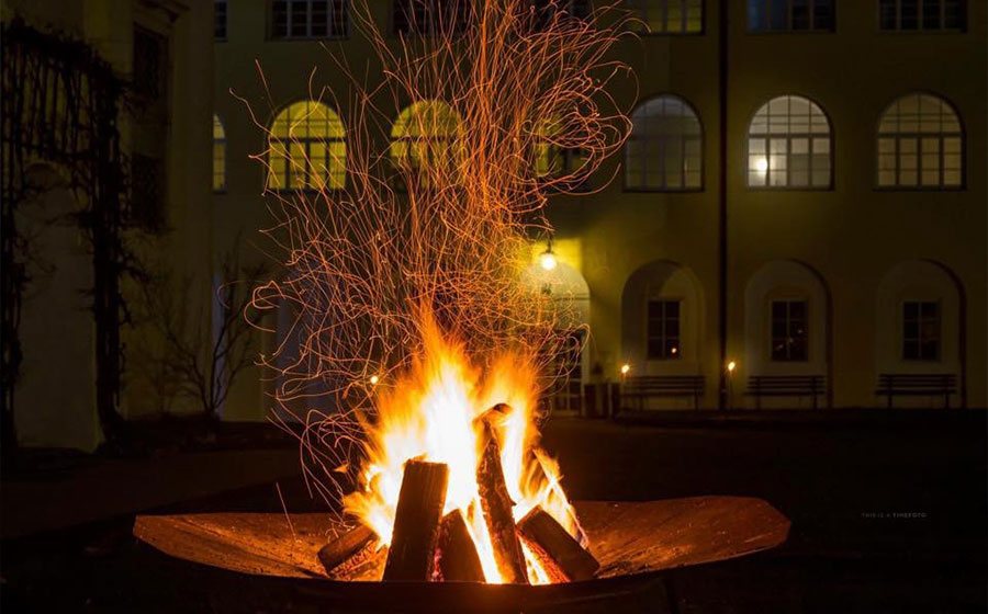 Gemütlicher Aperitif im historischen Stiftsinnenhof bei wärmenden Feuerschalen mit