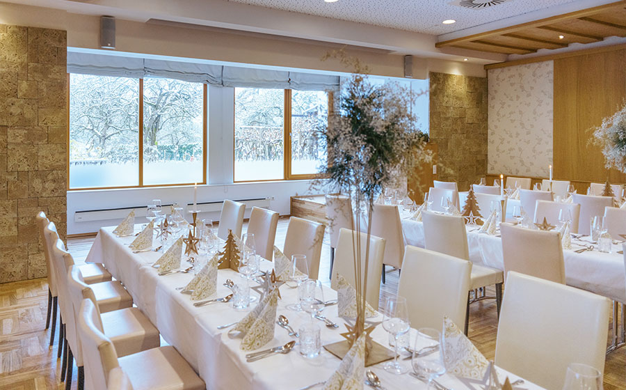 Feiern Sie Weihnachten oder den Start ins neue Jahr in stilvoller Atmosphäre im Garten-Hotel. Ob besinnliches Beisammensein, Firmen-Weihnachtsessen oder schwungvolle Jahresbeginn-Feiern – facettenreiche Räumlichkeiten, ausgezeichneter Kulinarik und stimmungsvolle Rahmenprogramme schaffen genussreiche Momente, die bleiben.